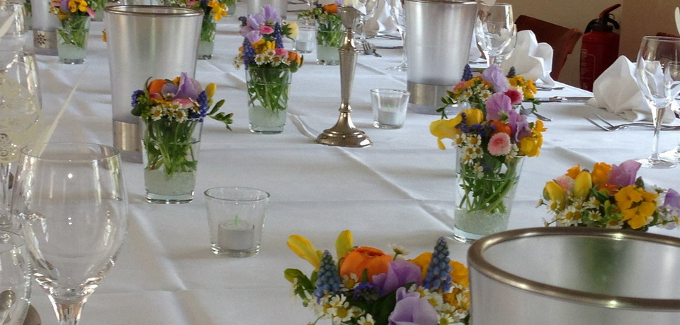 Ihre Feier – unsere Ideen. Wir gestalten Ihre Feier nach Ihren Wünschen mit dem passenden Blumenschmuck – ob für kleine private Veranstaltungen oder für Ihr Firmenevent. Wir liefern die passende Dekoration für jeden Anlass.